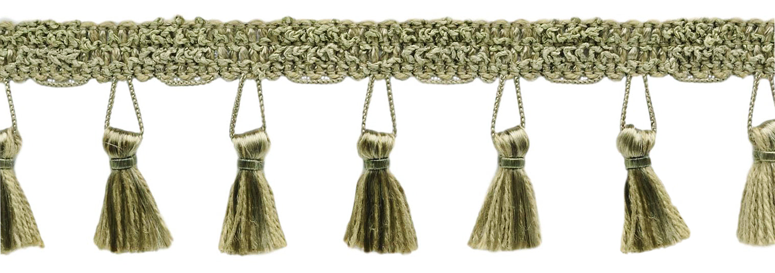 Tassel Fringe adds elegance to any project. It is often featured on window treatments, the leading edge and lower border of curtains, drapery panels, decorative throw pillows, bed canopies, table skirts and covers, valances, small upholstery, lampshades, and other home furnishing applications.