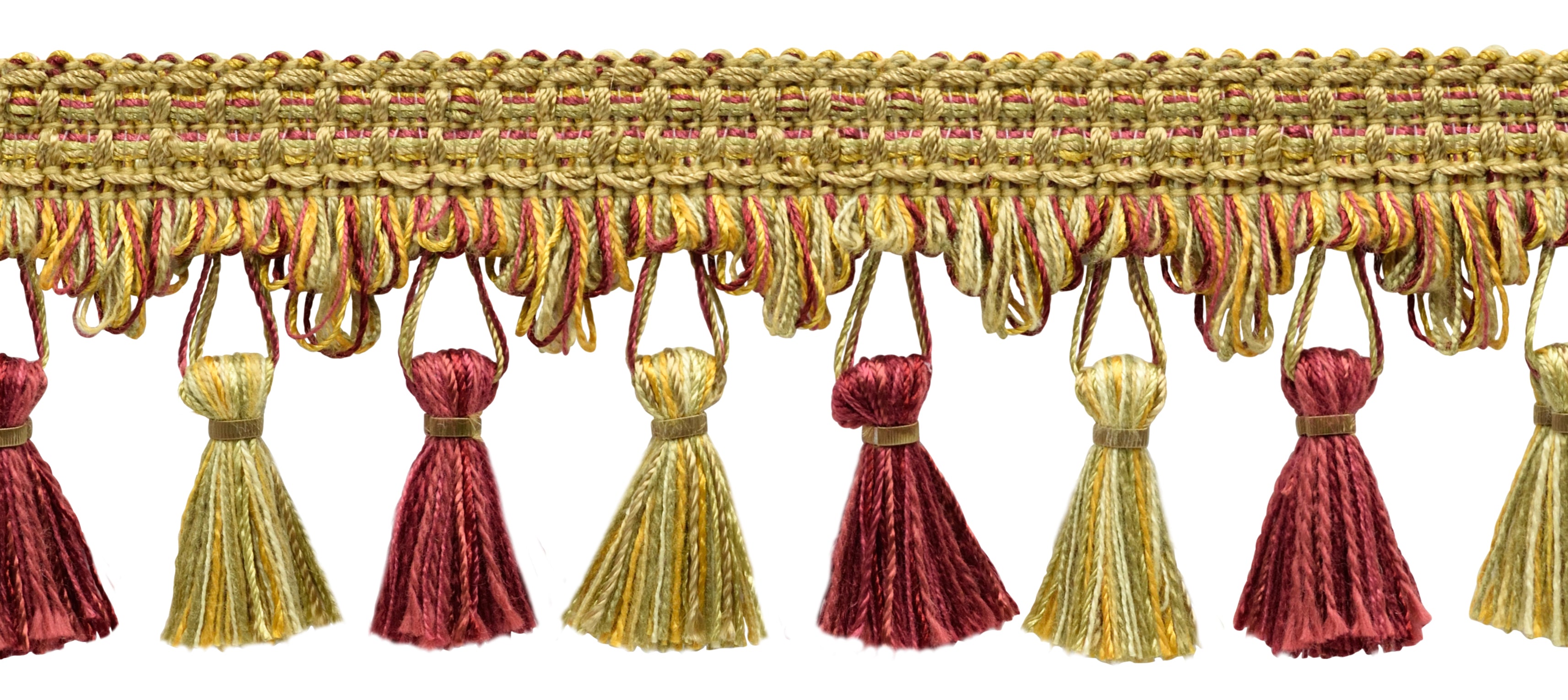 Tassel Fringe adds elegance to any project. It is often featured on window treatments, the leading edge and lower border of curtains, draperies, decorative throw pillows, bed canopies, table skirts and covers, valances, small upholstery, lampshades, and other home furnishing applications.