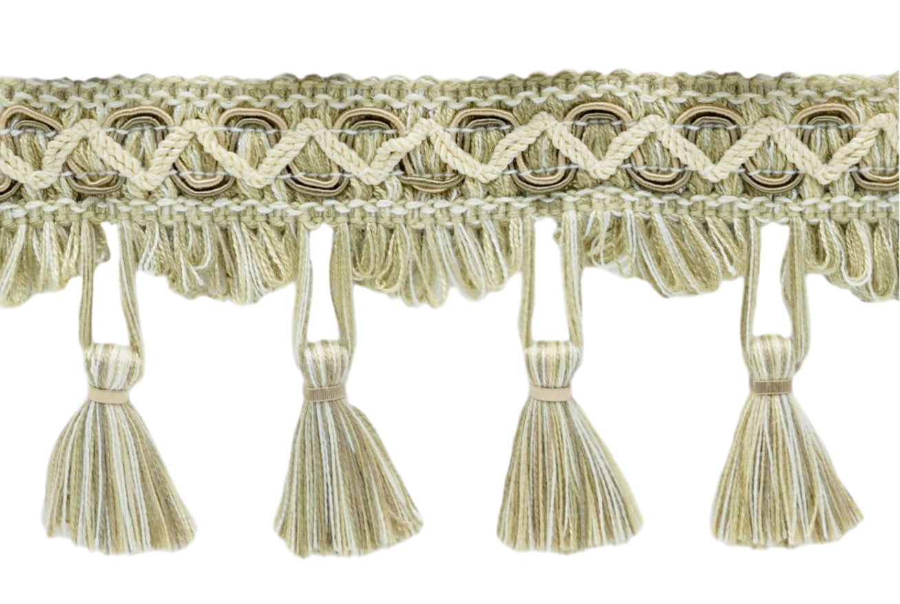 Suitable Applications and Suggested UsesTassel Fringe adds elegance to any project. It is often featured on window treatments, the leading edge and lower border of curtains, drapery panels, decorative throw pillows, bed canopies, table skirts and covers, valances, small upholstery, lampshades, and other home furnishing applications.